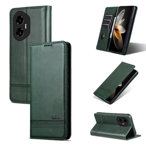 Funda de Cuero con Tapa Magnética Textura Piel de Becerro para Honor 300 Azns (Verde Oscuro)