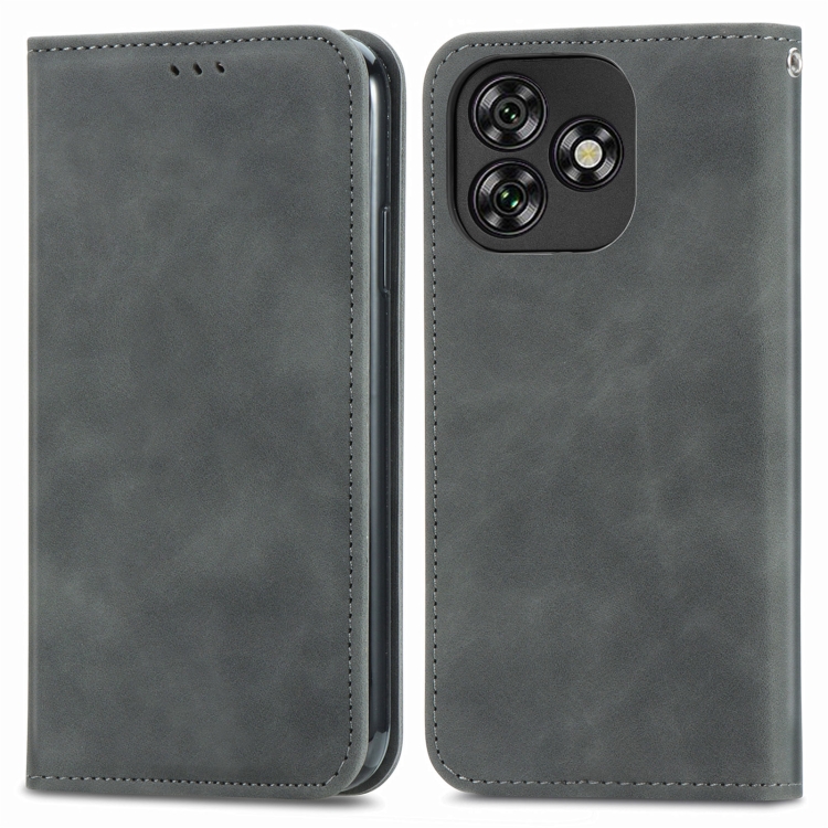 Funda de Cuero con Tapa Magnética y Tacto Retro para Oukitel C53 (Gris)