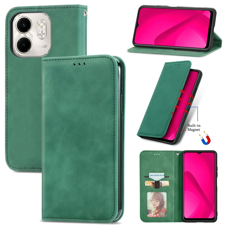 Funda de Cuero con Tapa Magnética y Tacto Retro para Infinix Smart 9 (Verde)