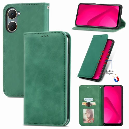Funda de Cuero con Tapa Magnética y Tacto Retro para Vivo Y18E (Verde)