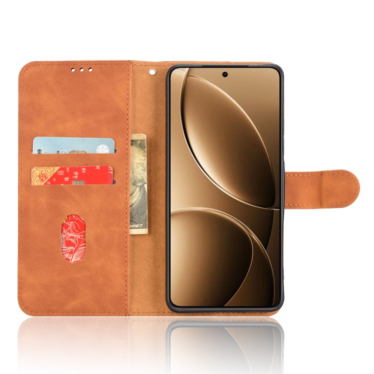 Funda de Cuero con Tapa Magnética y Tacto Sedoso para Redmi K80 Pro (Marrón)