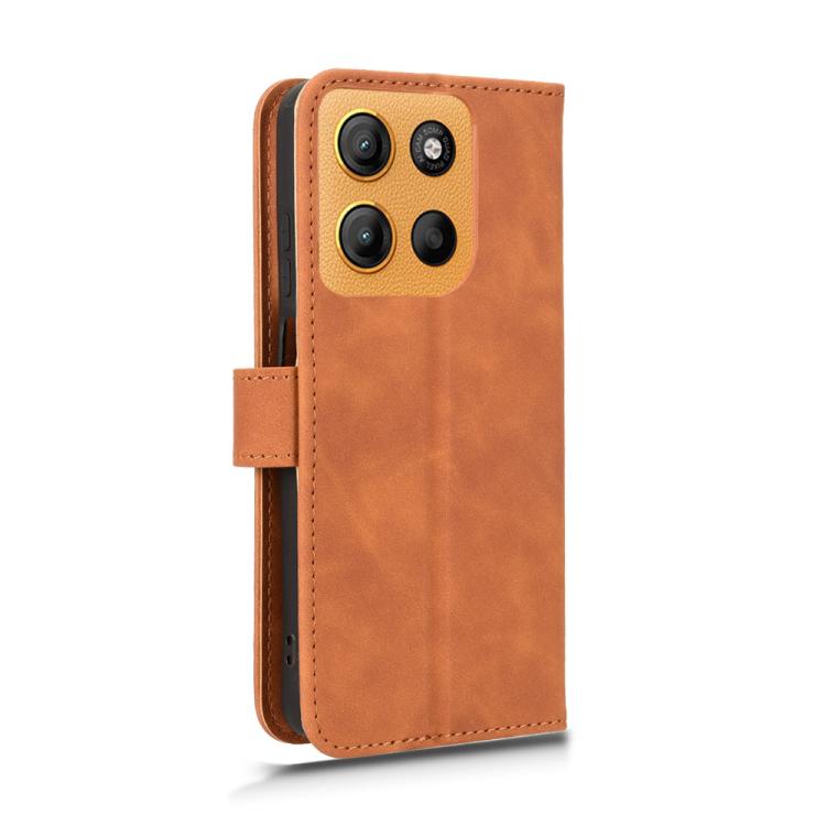 Funda de Cuero con Tapa Magnética para Motorola Moto G15 4G (Marrón)