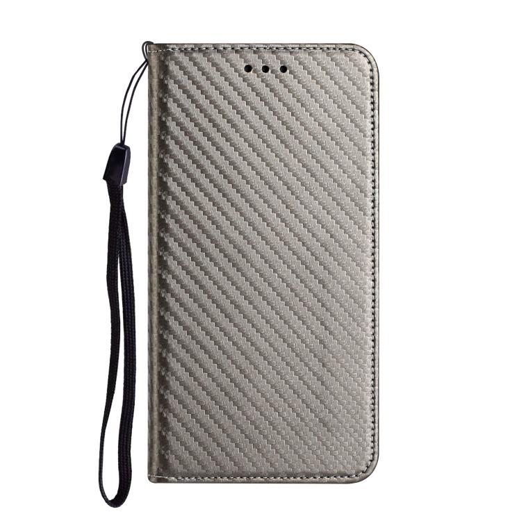 Funda de cuero con tapa magnética y textura de fibra de carbono para iPhone 17 (gris)