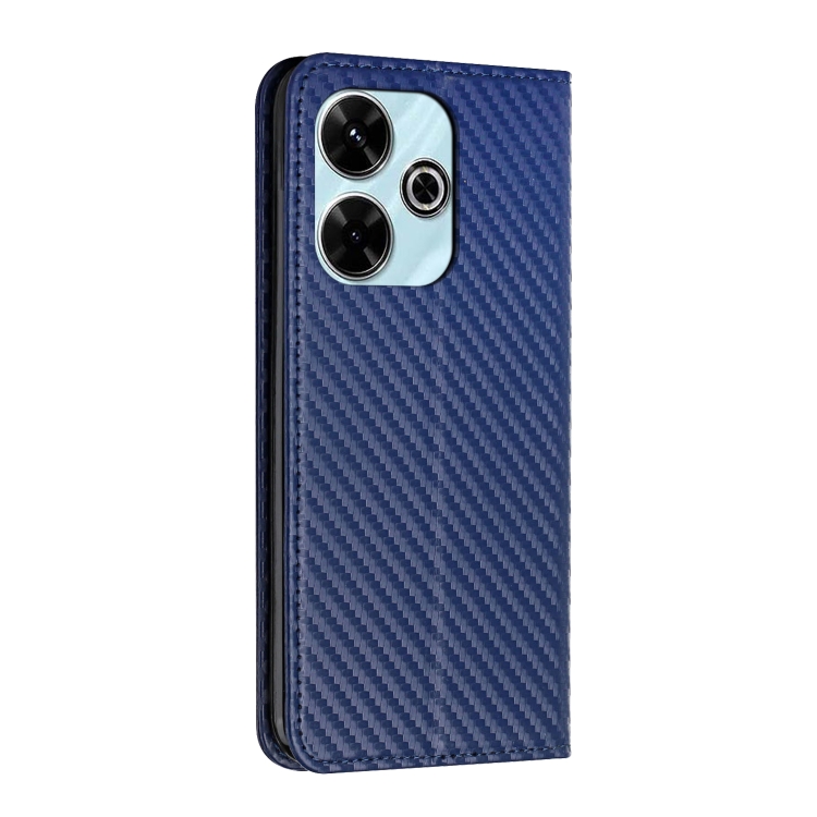 Funda de Cuero con Tapa Magnética y Textura de Fibra de Carbono para Xiaomi Redmi 13 4G (Azul)