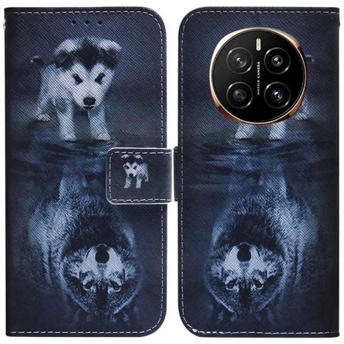Funda de Cuero con Tapa para Honor Magic 7 con Dibujo a Color (Lobo y Perro)