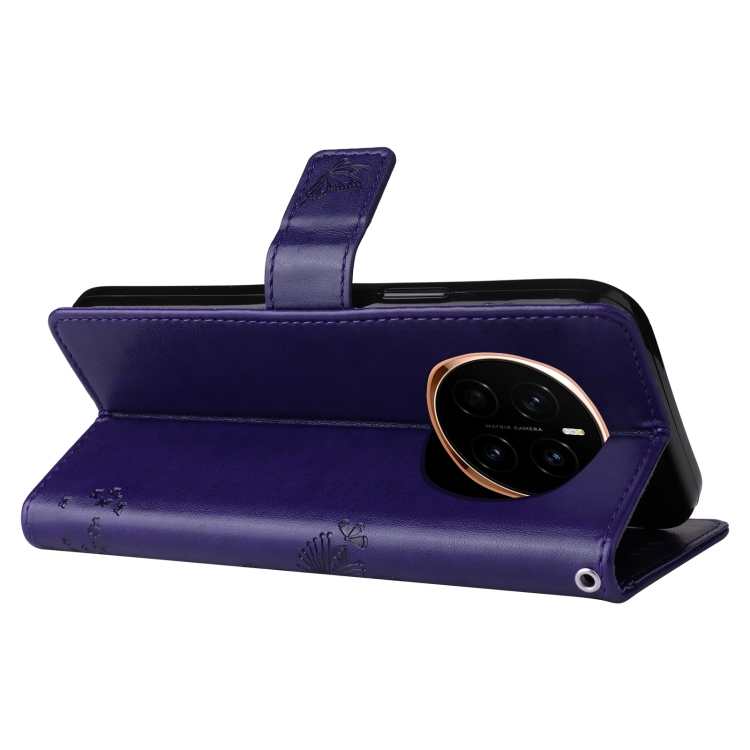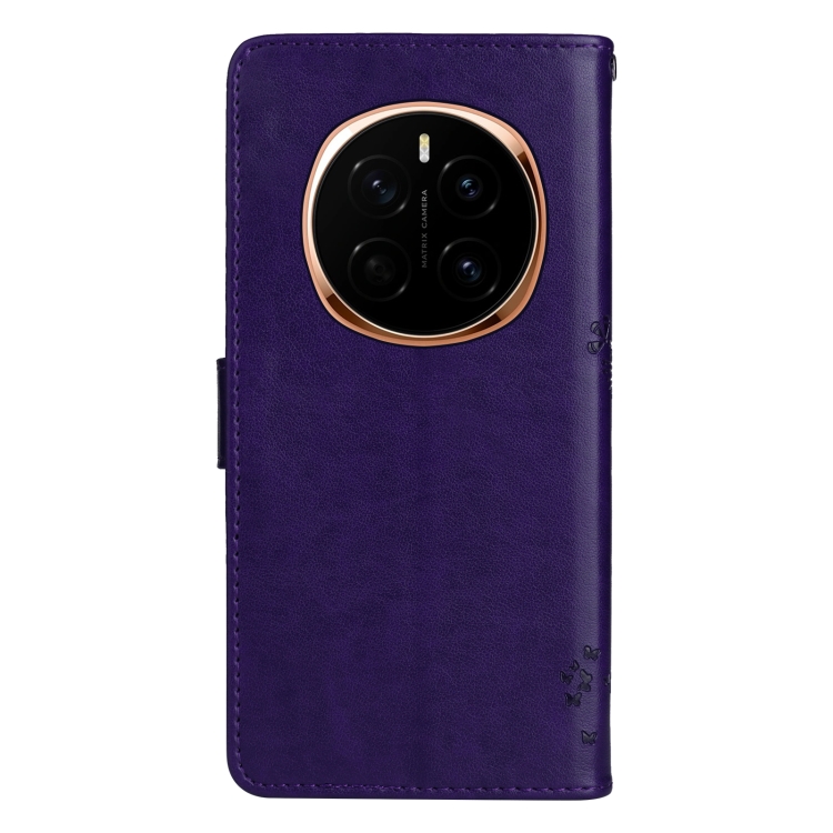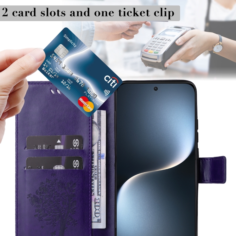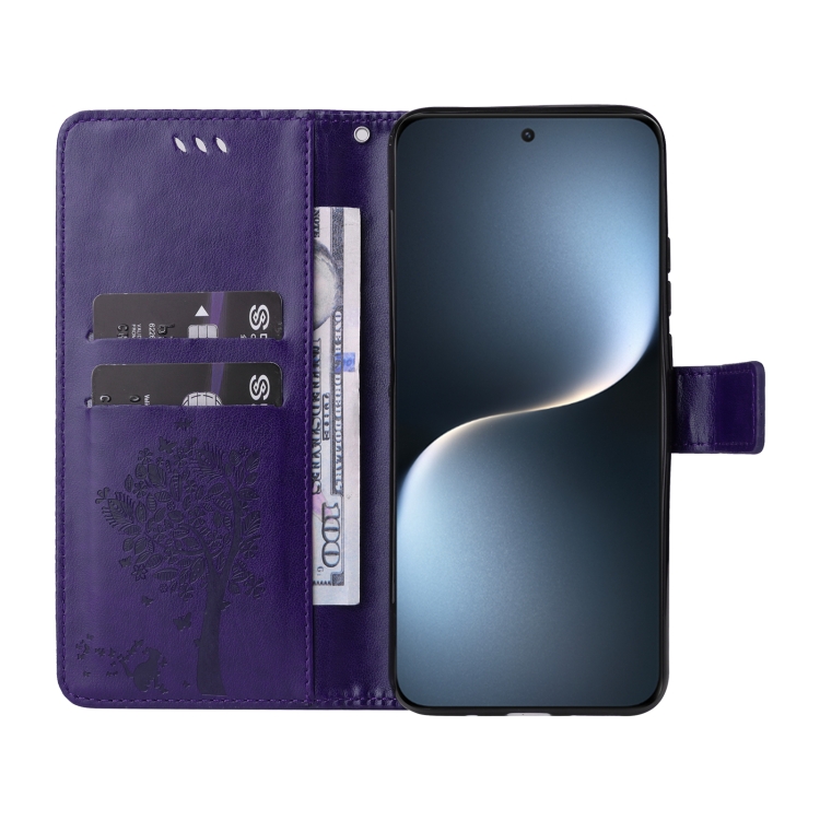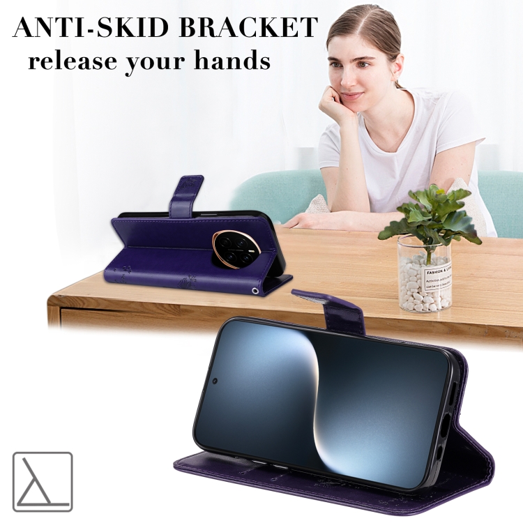 Funda de Cuero con Tapa para Honor Magic7 Estampado Árbol y Gato (Morado)