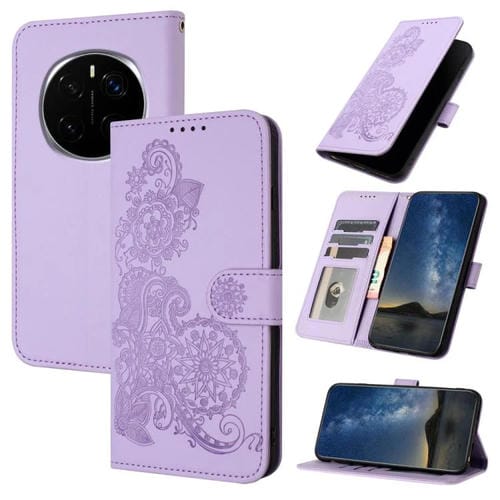 Funda de Cuero con Tapa para Honor Magic7 Pro con Diseño Flor de Datura en Relieve (Morado)