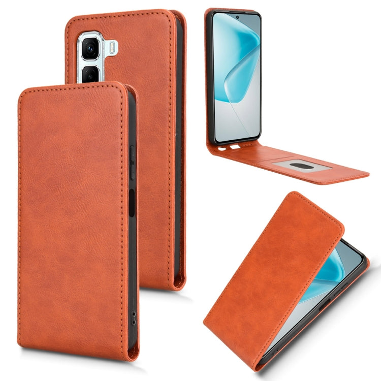 Funda de Cuero con Tapa Vertical Magnética para Infinix Hot 50 5G (Marrón)