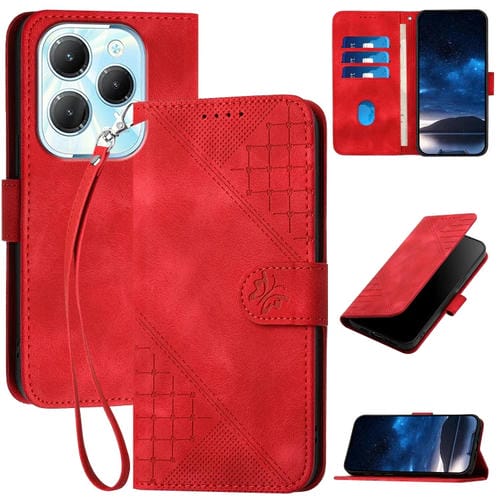 Funda de Cuero con Tapa y Cordón para Infinix Hot 40 Pro 4G Yx0080 con Diseño en Relieve (Rojo)