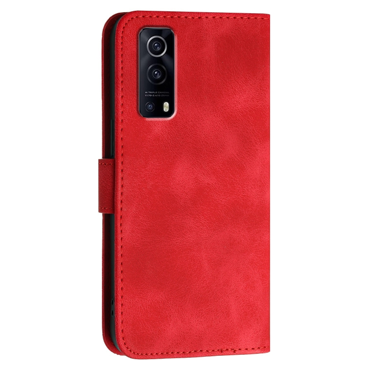 Funda de Cuero con Tapa y Cordón para Vivo Y52 5G Yx0080 con Diseño En Relieve de Mariposa y Cuadrícula (Rojo)