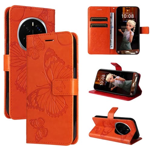 Funda de Cuero con Tapa y Mariposa 3D para Honor Magic7 Pro (Naranja)