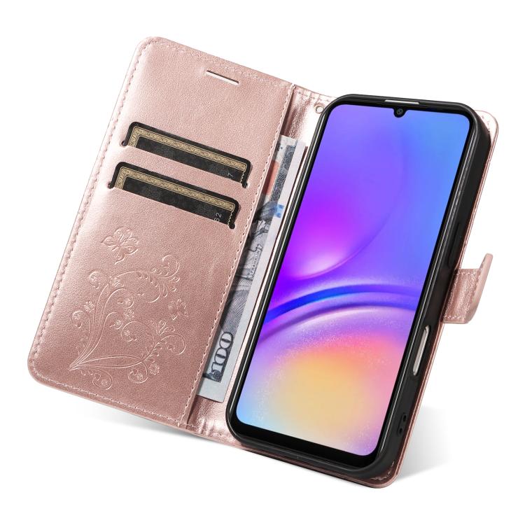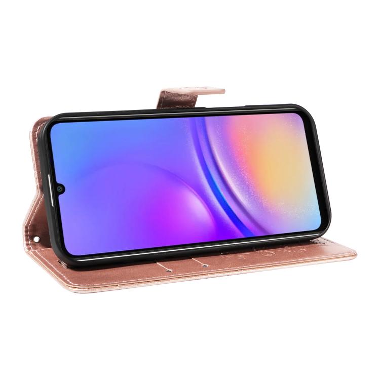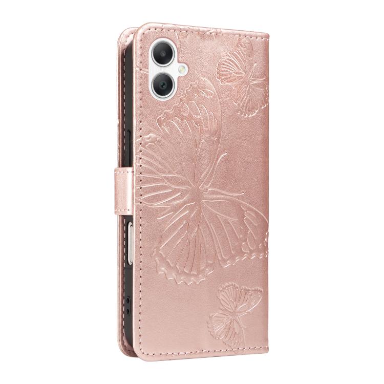 Funda de cuero con tapa y diseño de mariposas en relieve 3D para Samsung Galaxy A07 5G (oro rosa)