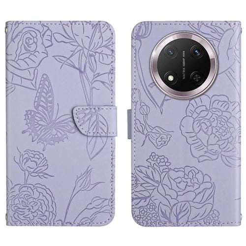 Funda de Cuero con Tapa y Mariposas en Relieve para Honor X9C Ht03 (Morado)