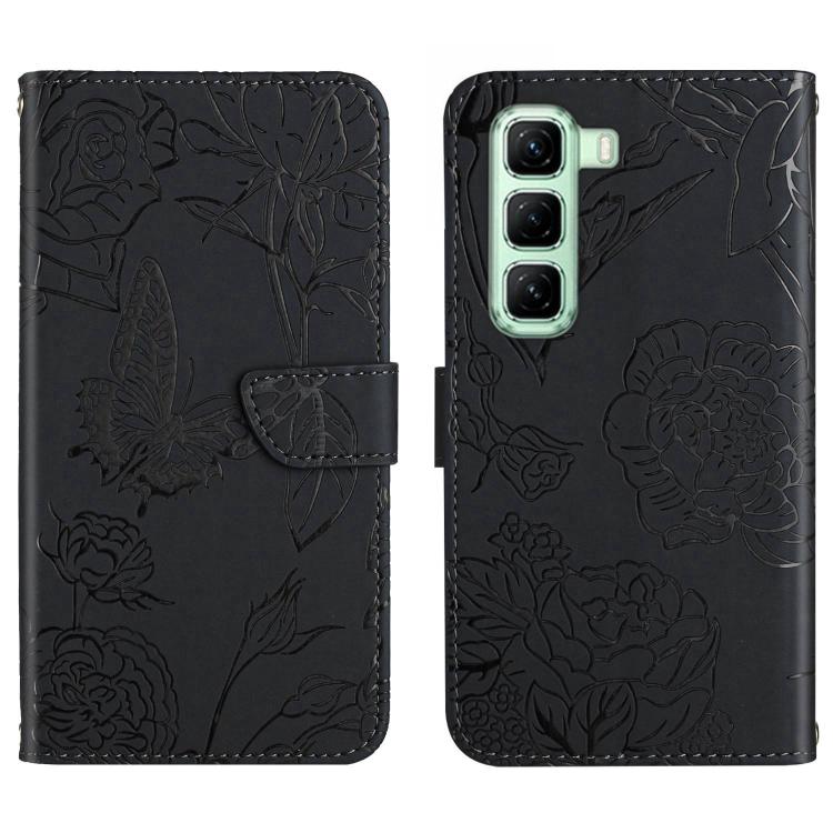 Funda de Cuero con Tapa y Mariposas En Relieve para Infinix Hot 50 Pro+ 4G (Negra)