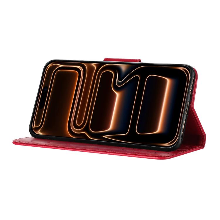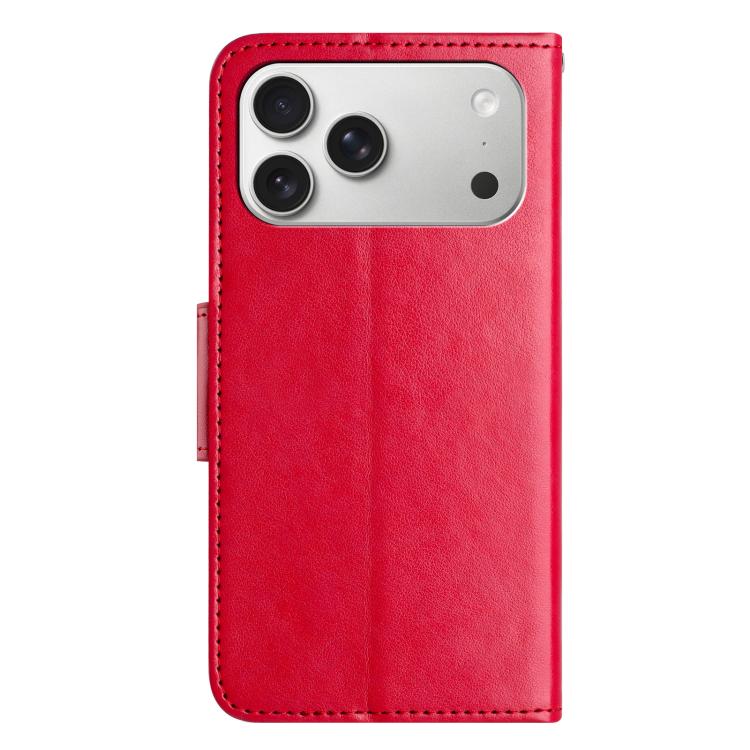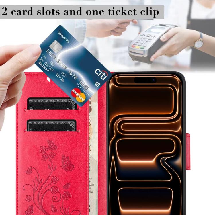 Funda de cuero con tapa y diseño de mariposas y flores para iPhone 17 Pro Max (roja)