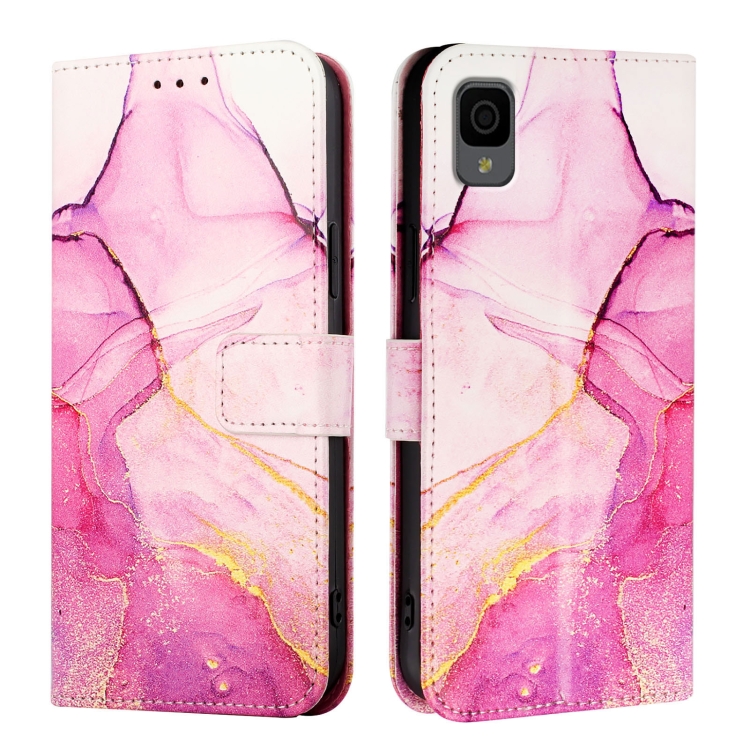 Funda de Cuero con Tapa para TCL 30Z T602Dl Pt003 Diseño Mármol (Rosa, Morado y Dorado)