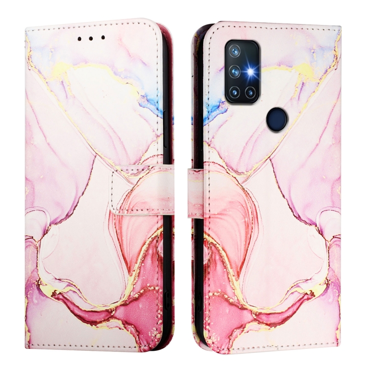 Funda de Cuero con Tapa y Diseño Mármol Pt003 para OnePlus Nord N10 5G (Oro Rosa)