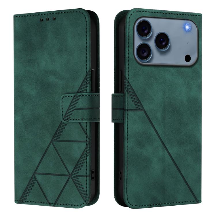 Funda de cuero con tapa y relieve 3D para iPhone 17 Pro Max (verde oscuro)
