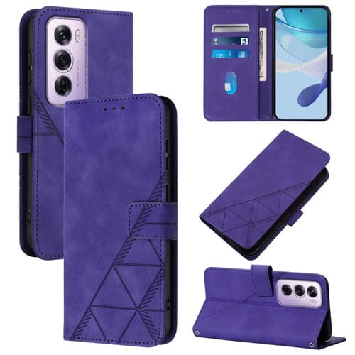Funda de Cuero con Tapa y Relieve 3D para Teléfono Oppo Reno12 Pro Global Crossbody (Morado)