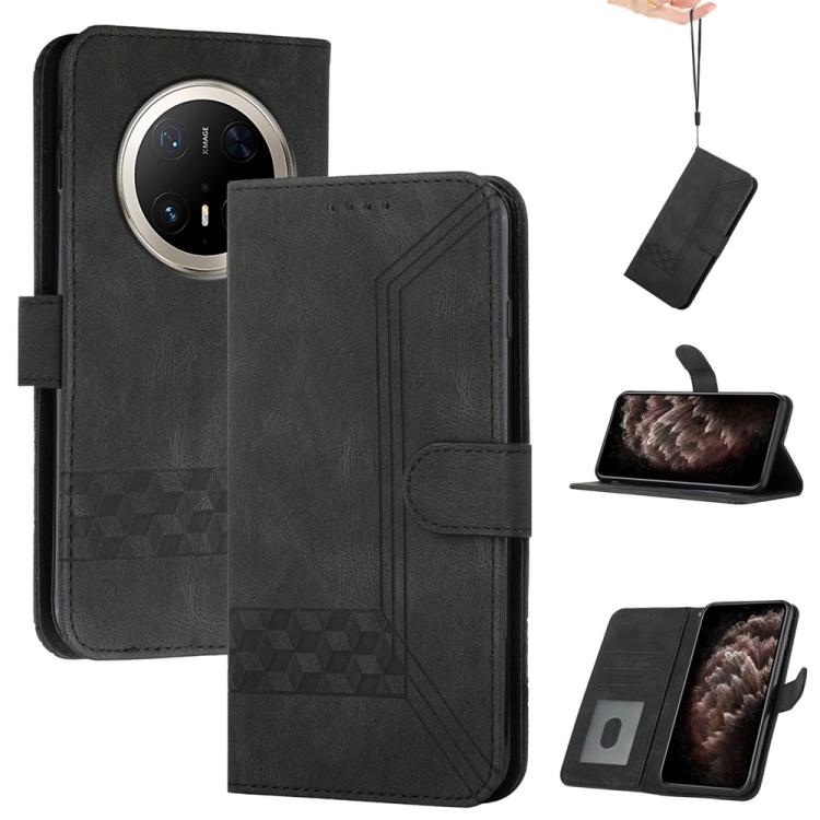 Funda de Cuero con Tapa y Tacto de Piel Cúbica para Huawei Mate 70 Pro y Mate 70 Pro+ (Negra)
