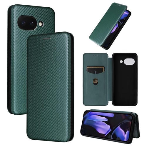 Funda de Cuero con Tapa y Textura de Fibra de Carbono para Google Pixel 9A (Verde)