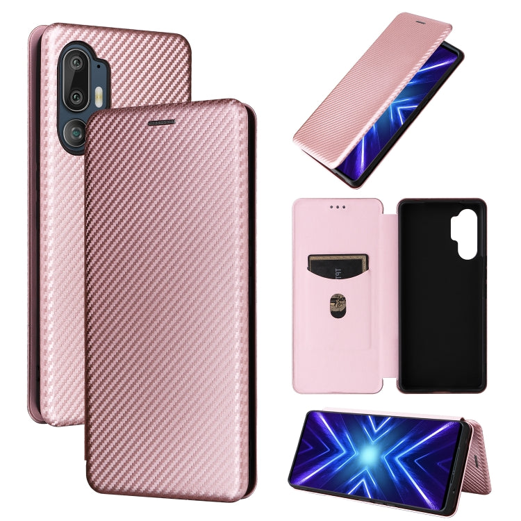 Funda de Cuero con Tapa y Textura de Fibra de Carbono para HTC U24 Pro (Rosa)
