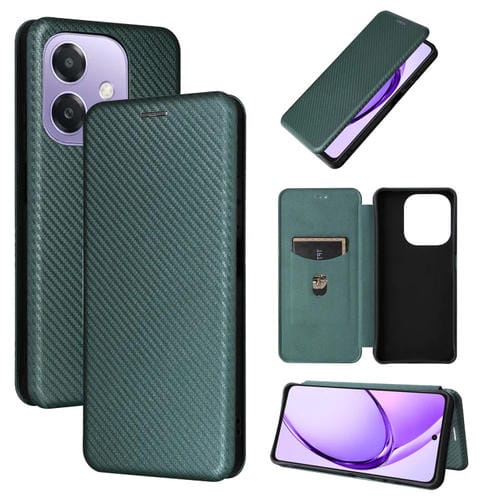 Funda de Cuero con Textura de Fibra de Carbono para Oppo A3X 5G (Verde)