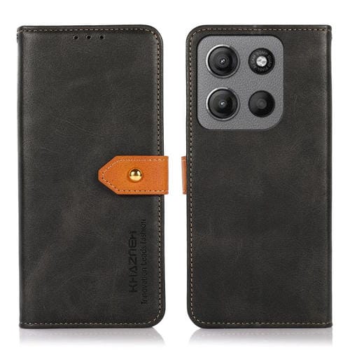 Funda de Cuero con Tapa y Textura Piel de Vaca para Motorola Moto G15 4G/G05 (Negro)