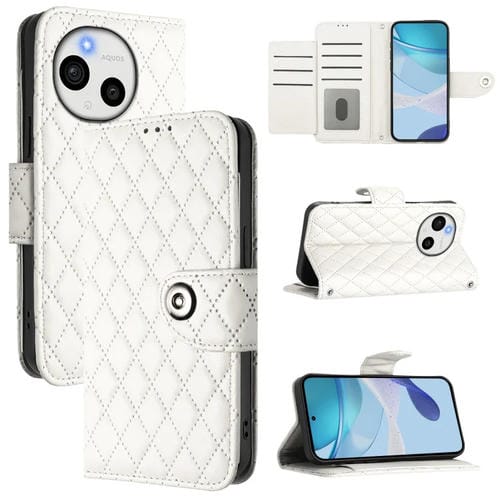 Funda de Cuero con Tapa y Textura Rombal para Sharp Aquos Sense9 Plus con Cordón (Blanco)
