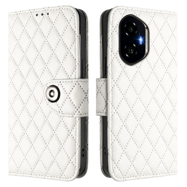 Funda de Cuero con Textura Rómbica y Cordón para Honor 300 5G (Blanca)