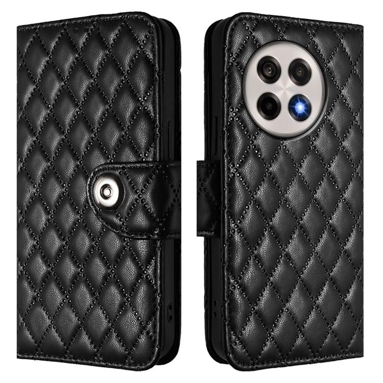 Funda de Cuero con Tapa y Textura Rómbica para OnePlus 13R/Ace 5 Pro 5G con Cordón (Negro)