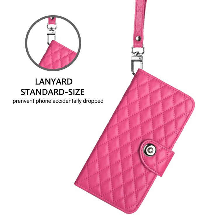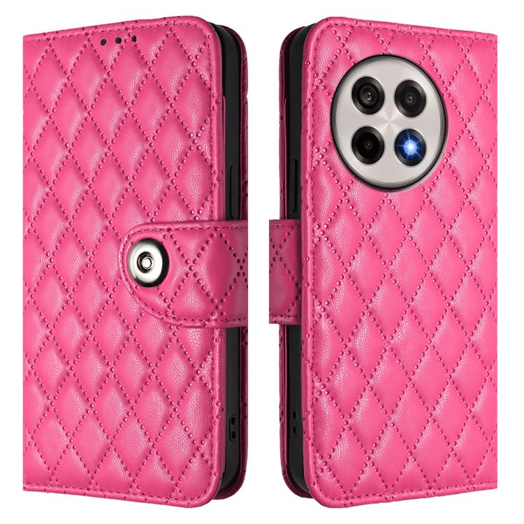 Funda de Cuero con Tapa y Textura Rómbica para OnePlus 13R/Ace 5 Pro 5G con Cordón (Rosa Rojo)