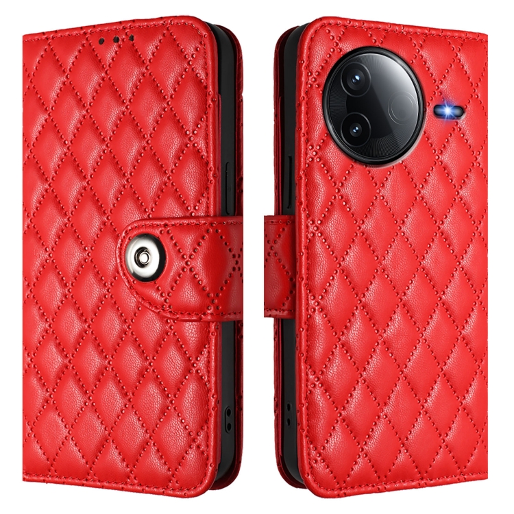 Funda de Cuero con Tapa y Textura Rómbica para Redmi K80 5G/K80 Pro 5G con Cordón (Rojo)