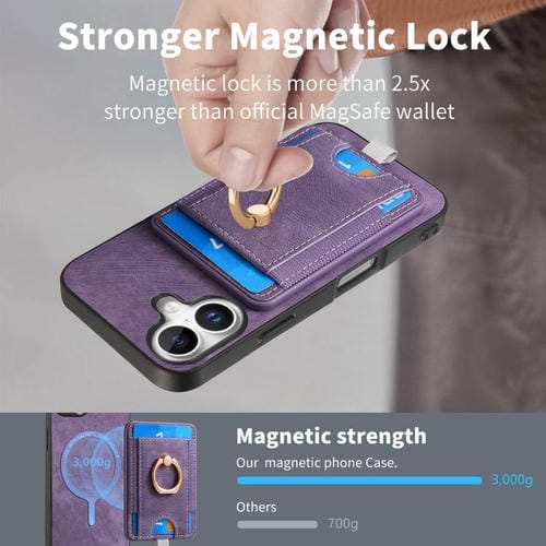 Funda de cuero con tarjetero magnético divisible para iPhone 17 (morado)
