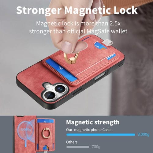 Funda de cuero con tarjetero magnético divisible para iPhone 17 (rosa)