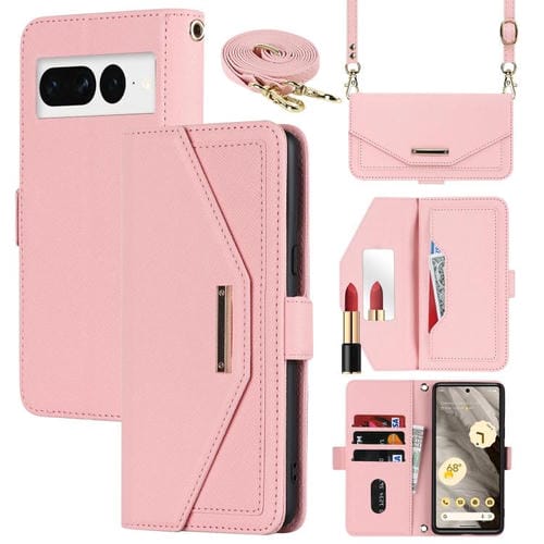 Funda de Cuero con Textura Cruzada y Cordón para Google Pixel 7 (Rosa)