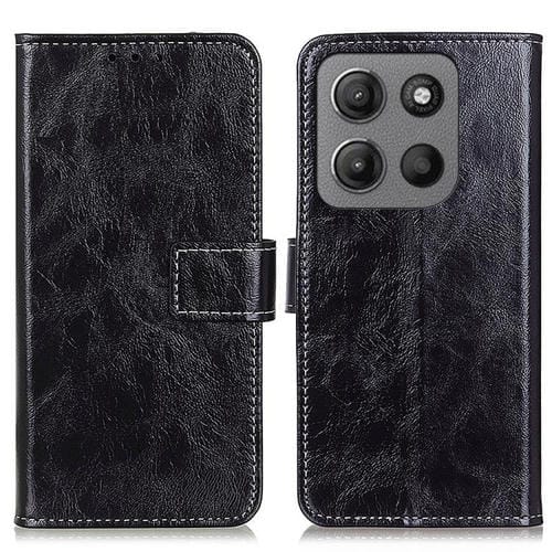 Funda de Cuero con Textura Caballo Loco Retro para Motorola Moto G15 4G/G05 (Negra)