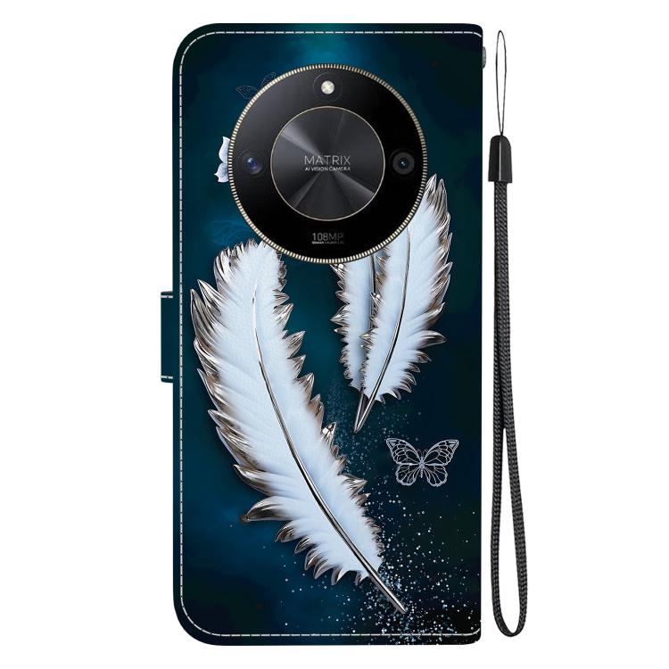 Funda de Cuero con Textura de Cristal y Dibujo para Honor X9B/Magic6 Lite (Plumas de Mariposa Blancas)