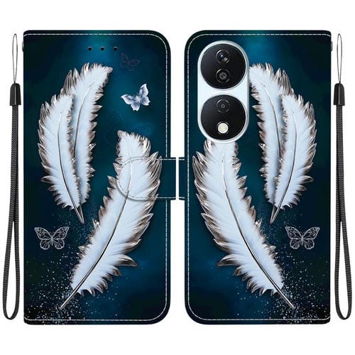 Funda de Cuero con Textura de Cristal y Dibujo para Honor X7B Play 50 Plus (Plumas de Mariposa Blancas)