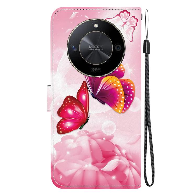 Funda de Cuero con Textura de Cristal y Dibujo para Honor X9B/Magic6 Lite (Mariposas Rosas)