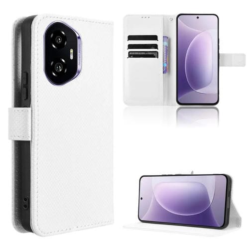 Funda de Cuero con Textura de Diamante para Honor 300 5G (Blanca)