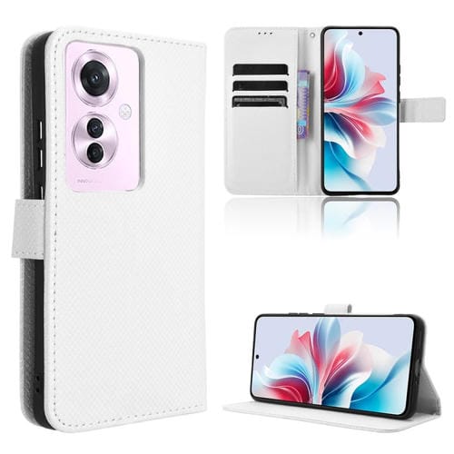 Funda de Cuero con Textura de Diamante para Oppo Reno11 Pjh110 (Blanca)