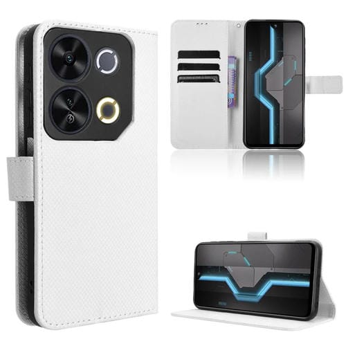 Funda de Cuero con Textura de Diamante para Itel P65 4G (Blanca)