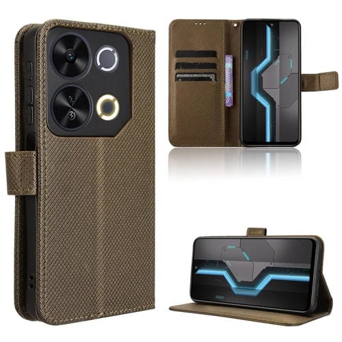 Funda de Cuero Itel P65 4G con Textura de Diamante (Marrón)