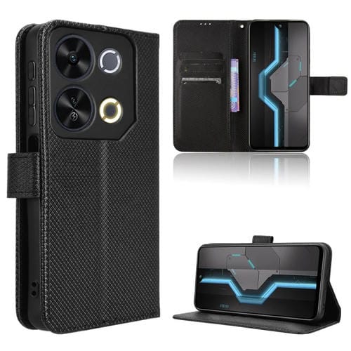 Funda de Cuero con Textura de Diamante para Itel P65 4G (Negra)