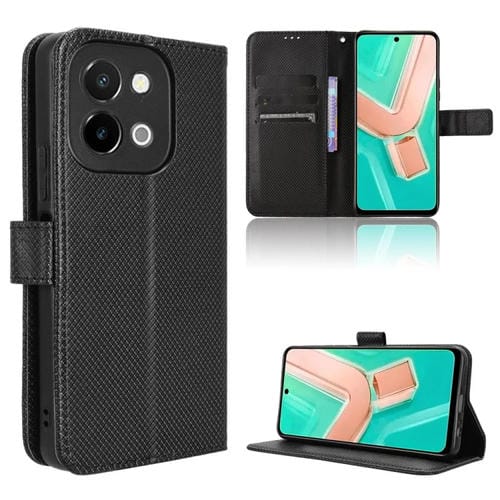 Funda de Cuero con Textura de Diamante para Vivo Y28 4G (Negra)