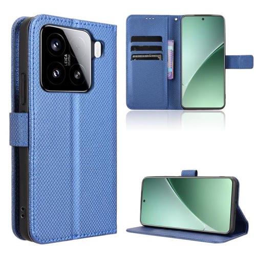 Funda De Cuero Con Textura De Diamante Para Xiaomi 15 Pro (Azul)