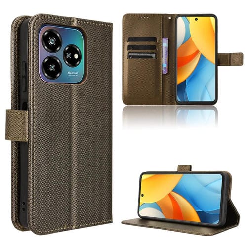 Funda de Cuero Textura Diamante para ZTE Axon 60 Lite y Blade V60 Vita (Marrón)