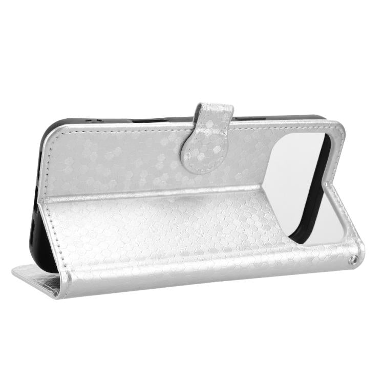 Funda de cuero con textura de lunares y panal para iPhone 17 Pro (plateada)