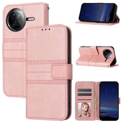 Funda de Cuero con Textura de Piel de Serpiente con Rayas En Relieve para Redmi K80 5G/K80 Pro 5G (Rosa)